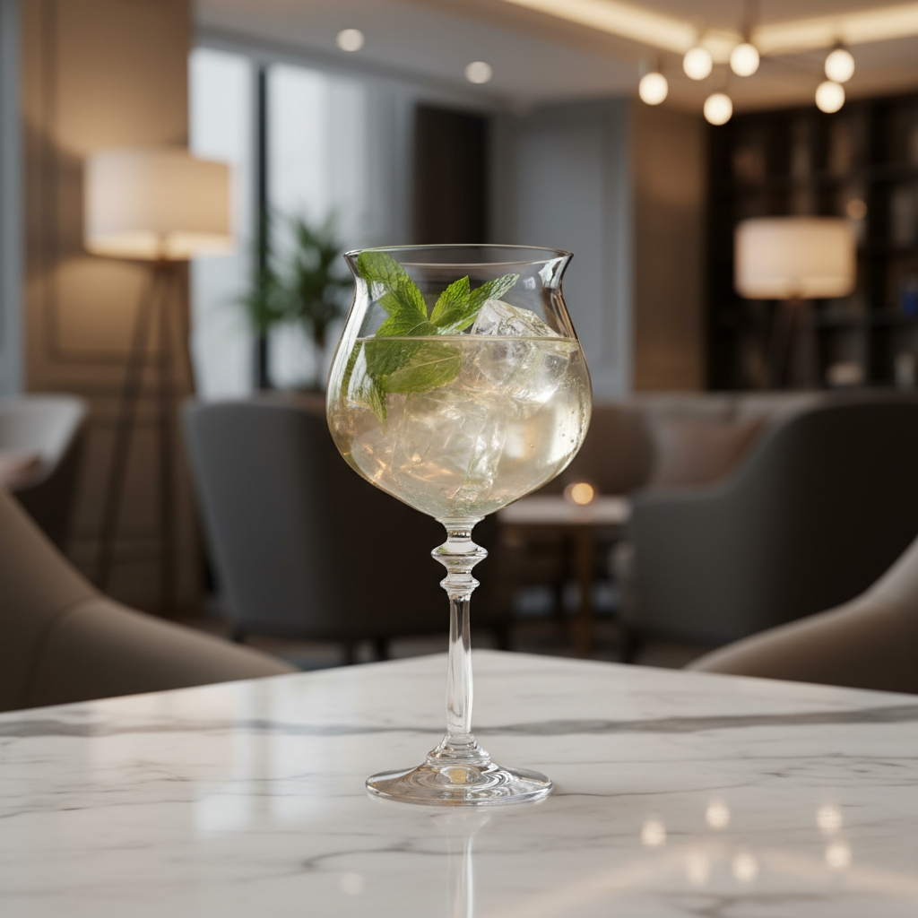 Az ‘1924 GIN TONIC’ pohár lenyűgöző ballon kelyhe és díszített szára a klasszikus koktélkultúra aranykorát idézi. Egyedi, domborított talpazata és elegánsan tagolt szára nemcsak vizuális eleganciát kölcsönöz, hanem tökéletes stabilitást is biztosít. A tágas kehely optimális teret ad a gin tonic aromáinak kibontakozásához, míg a botanikus fűszerek és a tonik pezsgése harmonikus egységgé olvad. Kiváló választás prémium gin alapú koktélokhoz, ahol a forma és az íz tökéletes szimbiózisa születik meg.